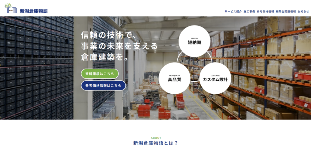 新潟市に本社を置き、倉庫建築専門ブランド「新潟倉庫物語」を展開する地元有力企業です。